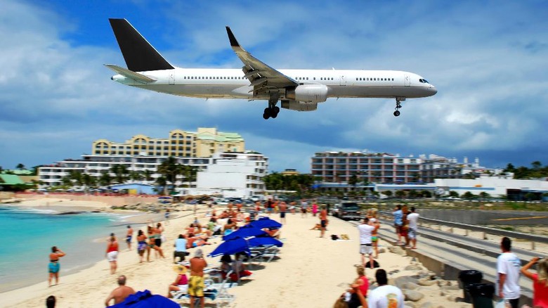 Pantai Maho di Sint Marteen, Karibia terkenal alasannya ialah keunikannya. Pantainya begitu hanya 200 meter dari ujung landasan Princess Juliana International Airport. Wisatawan jadi mampu melihat pesawat mendarat dan terbang.